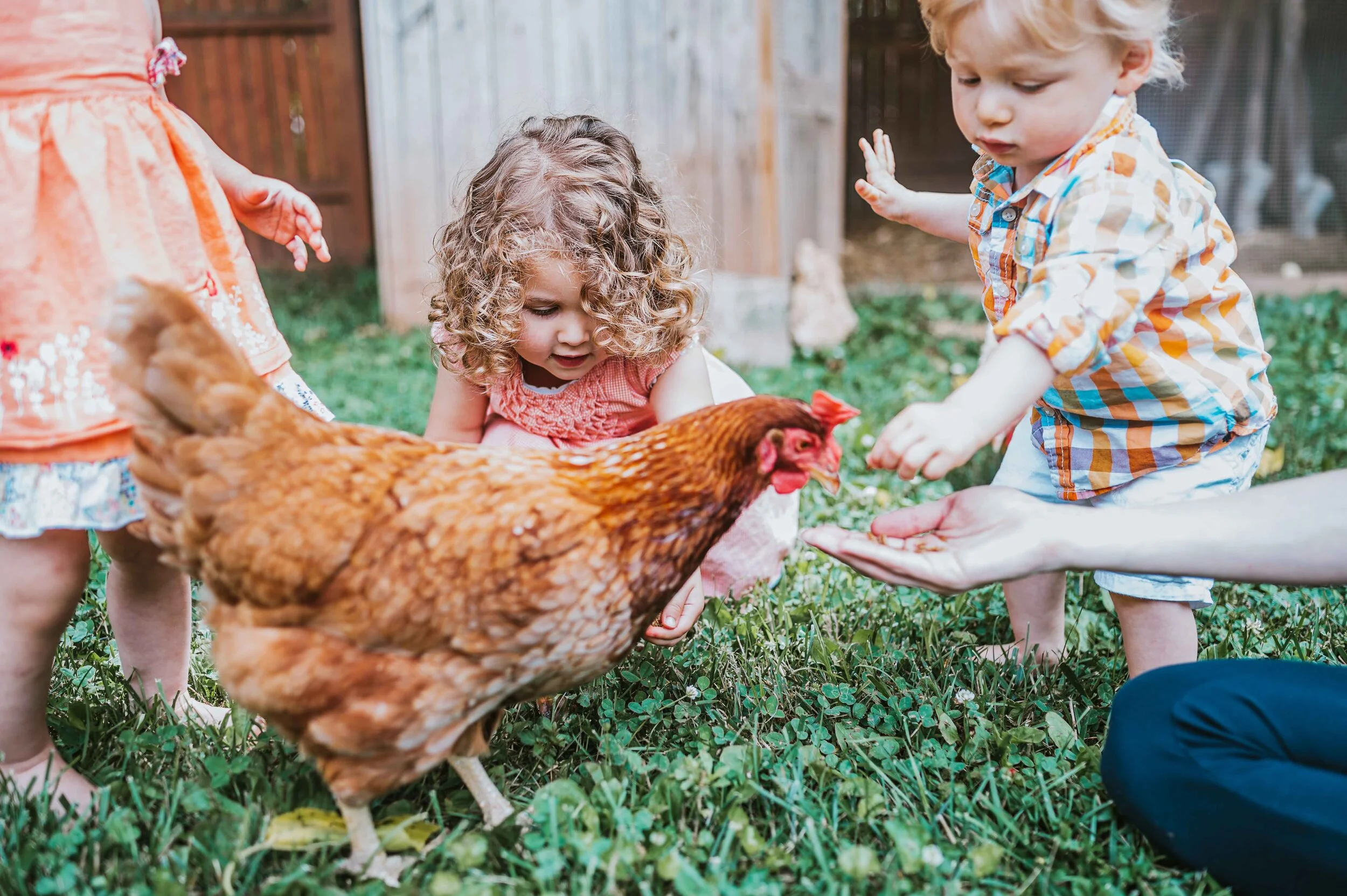 I couldn’t believe we were 50 minutes into our 1-hour session when mom told me they had a chicken coup in the backyard! —I mean, come ON! We have to take the crew outside to hang with the hens. We did and those photos are some of my favorites of the morning!